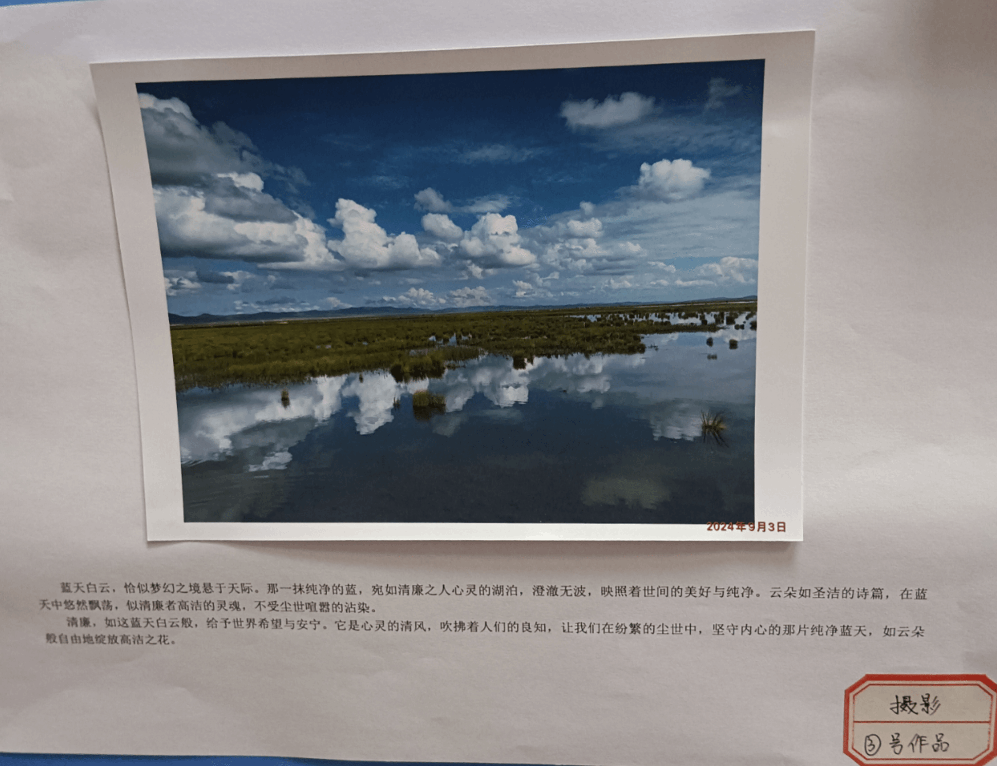 本次展览受到老师们的积极响应,共提交28幅作品。学部教师和家属通过书法、绘画、摄影作品,展现自己对清廉的理解、追求与实践。本次活动,为老师们、家属们以及孩子们提供了一个交流的平台,大家纷纷把自己对清廉的理解与信念融入作品中,在学部内营造出浓厚的文化氛围。亲子合作的形式,也让清廉的理念在下一代心中生根发芽。