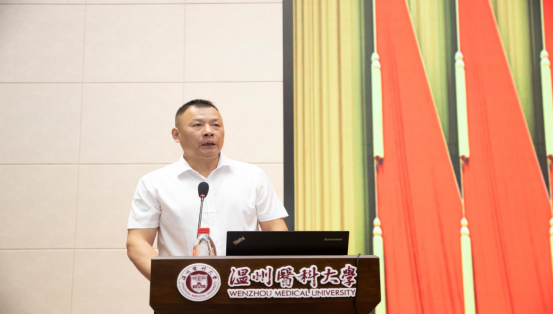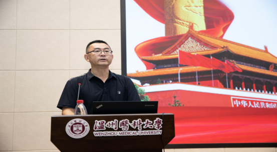 7月5日,91黑料 第六届教职工大会暨工会会员大会第一次会议在生物医药科研楼二楼顺利召开,全体教职工参会,党总支书记赵建中主持大会。
