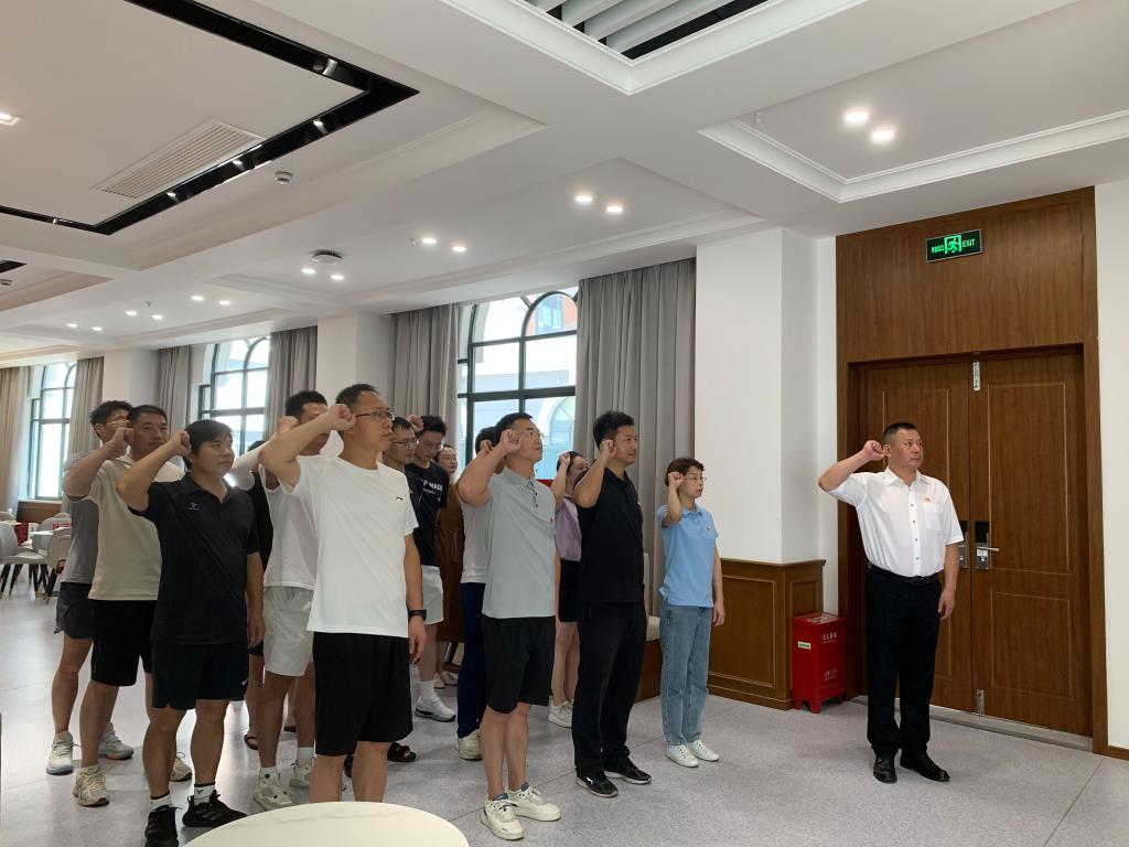 党总支书记赵建中带领全体党员重温入党誓词,一字一句,铿锵有力,震撼着每一位党员。