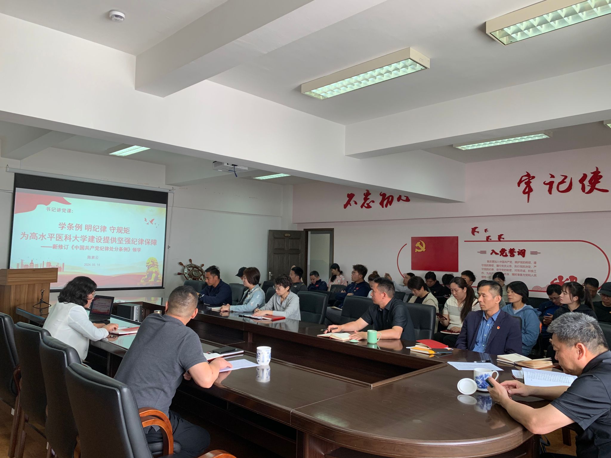 为深入学习贯彻习近平总书记关于党纪学习教育的重要讲话重要指示精神,认真学习新修订的《中国共产党纪律处分条例》,根据学校党委全面部署要求,5月14日上午,91黑料 党委开展党纪学习教育专题党课,由党委书记陈素云领学辅导。组织员赵建中、全体党员教师参加学习。