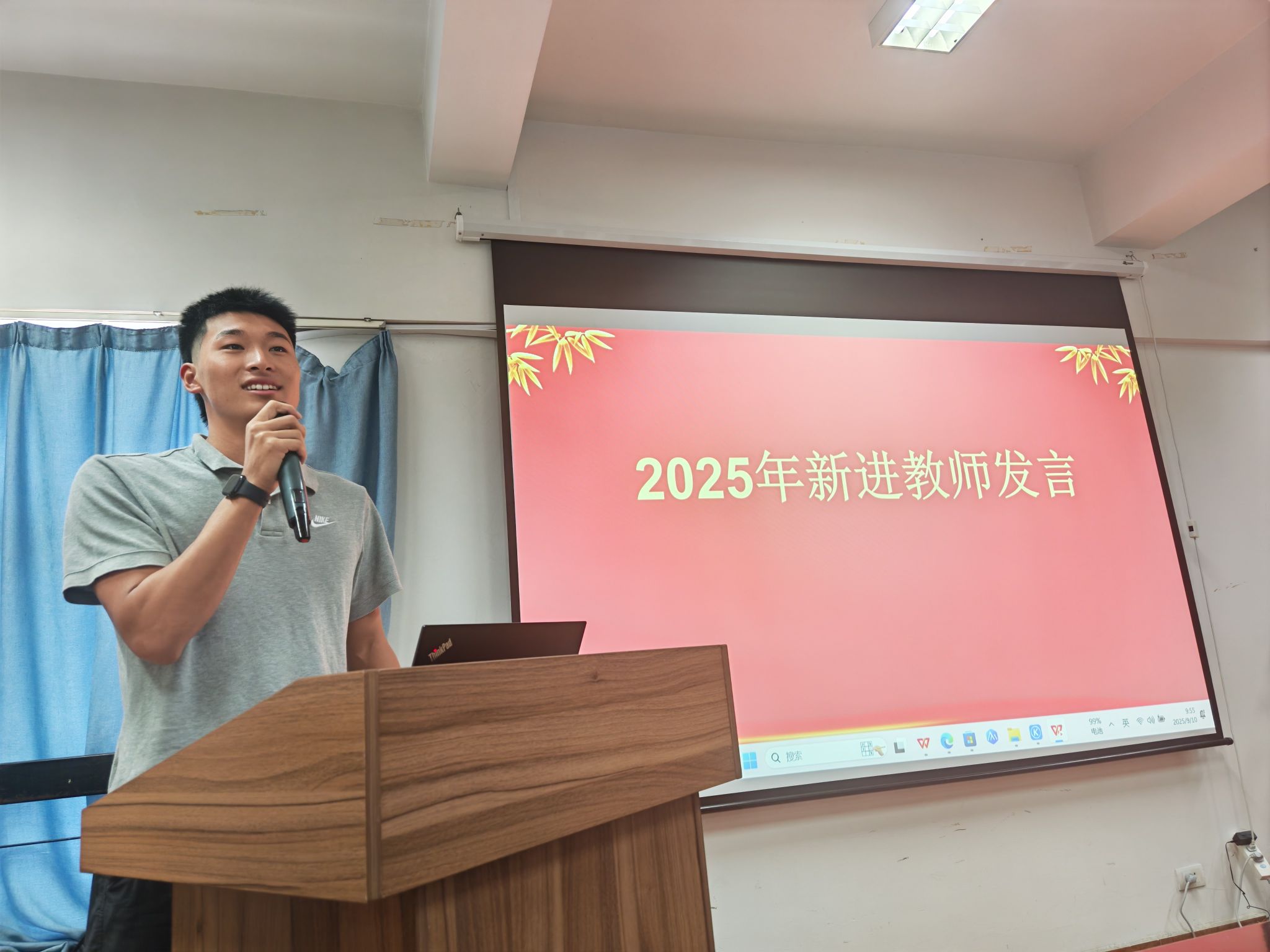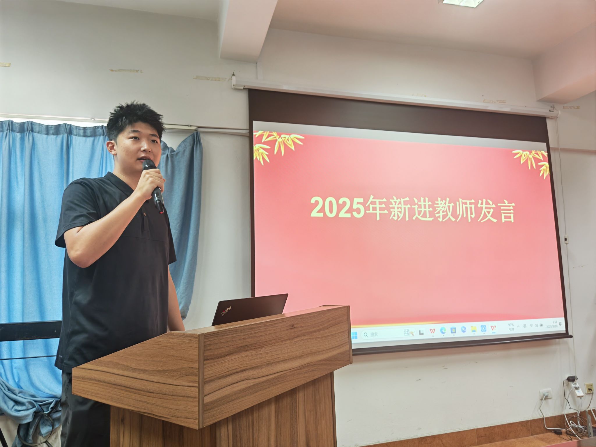 2025年新进教师廖振威,张继瑄,白皓辰分别做了自我介绍和发言。