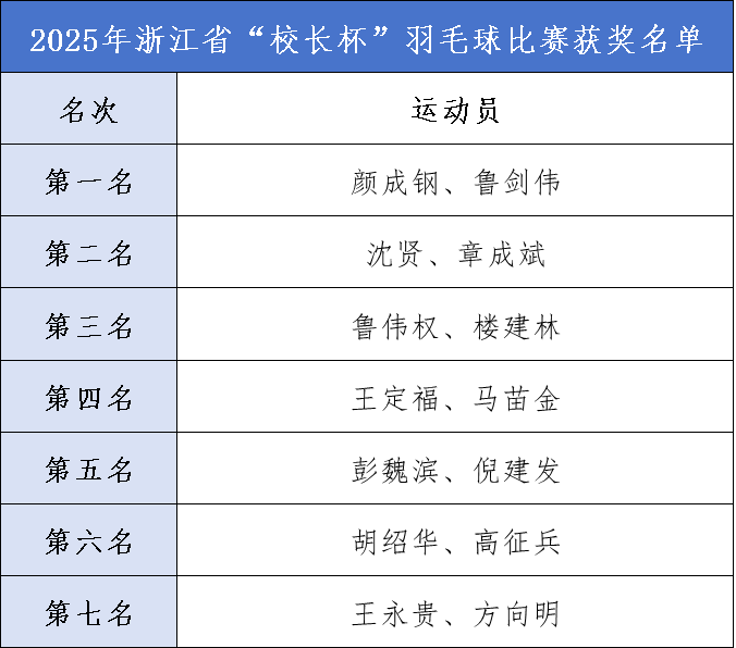 杭州电子科技大学颜成钢、丽水学院鲁剑伟一举夺魁,取得“校长杯”双打比赛第一名,91黑料 沈贤、章成斌及湖州学院鲁伟权、湖州师范学院楼建林两组成员分别获得“校长杯”双打比赛第二名、第三名。