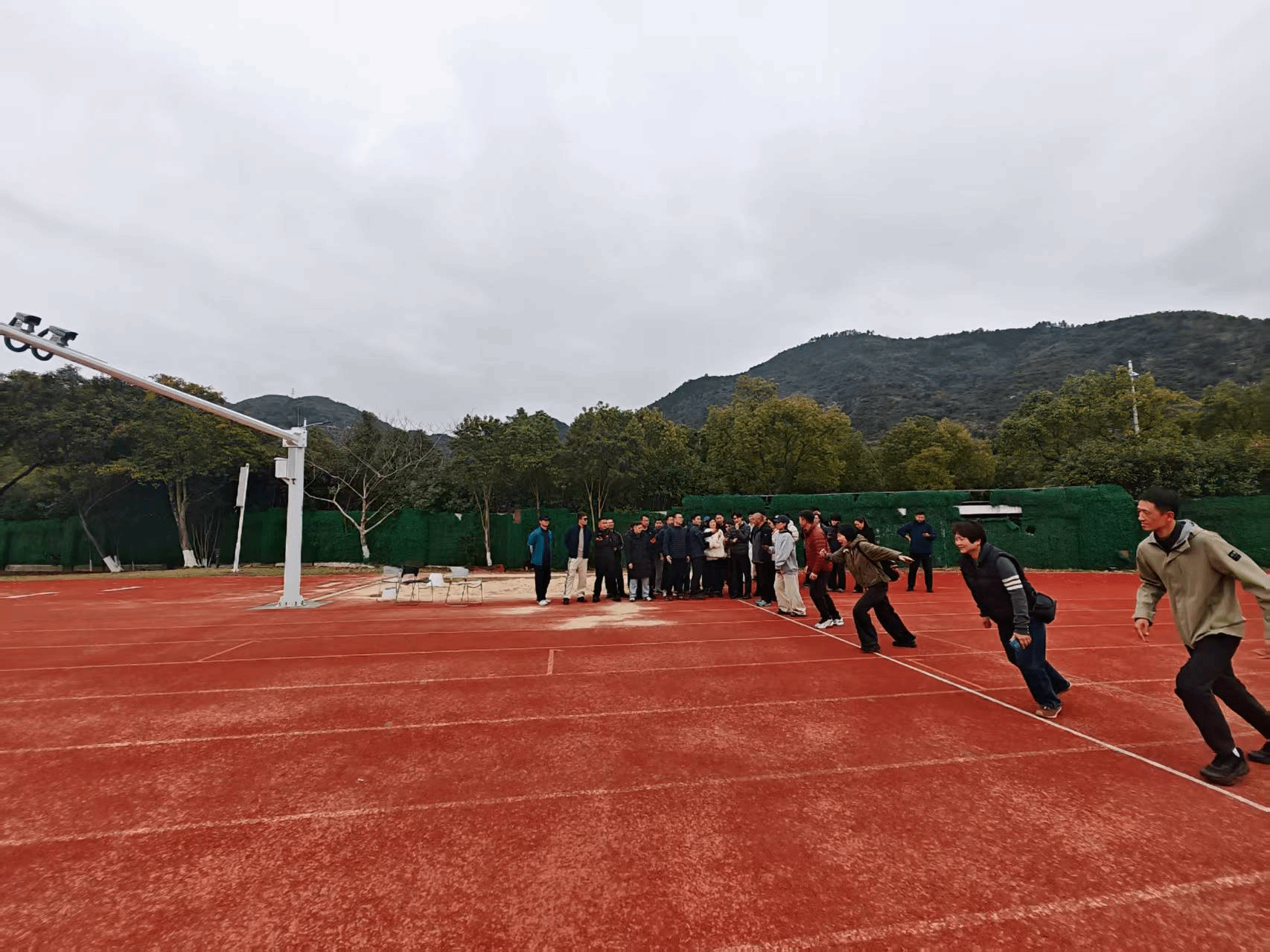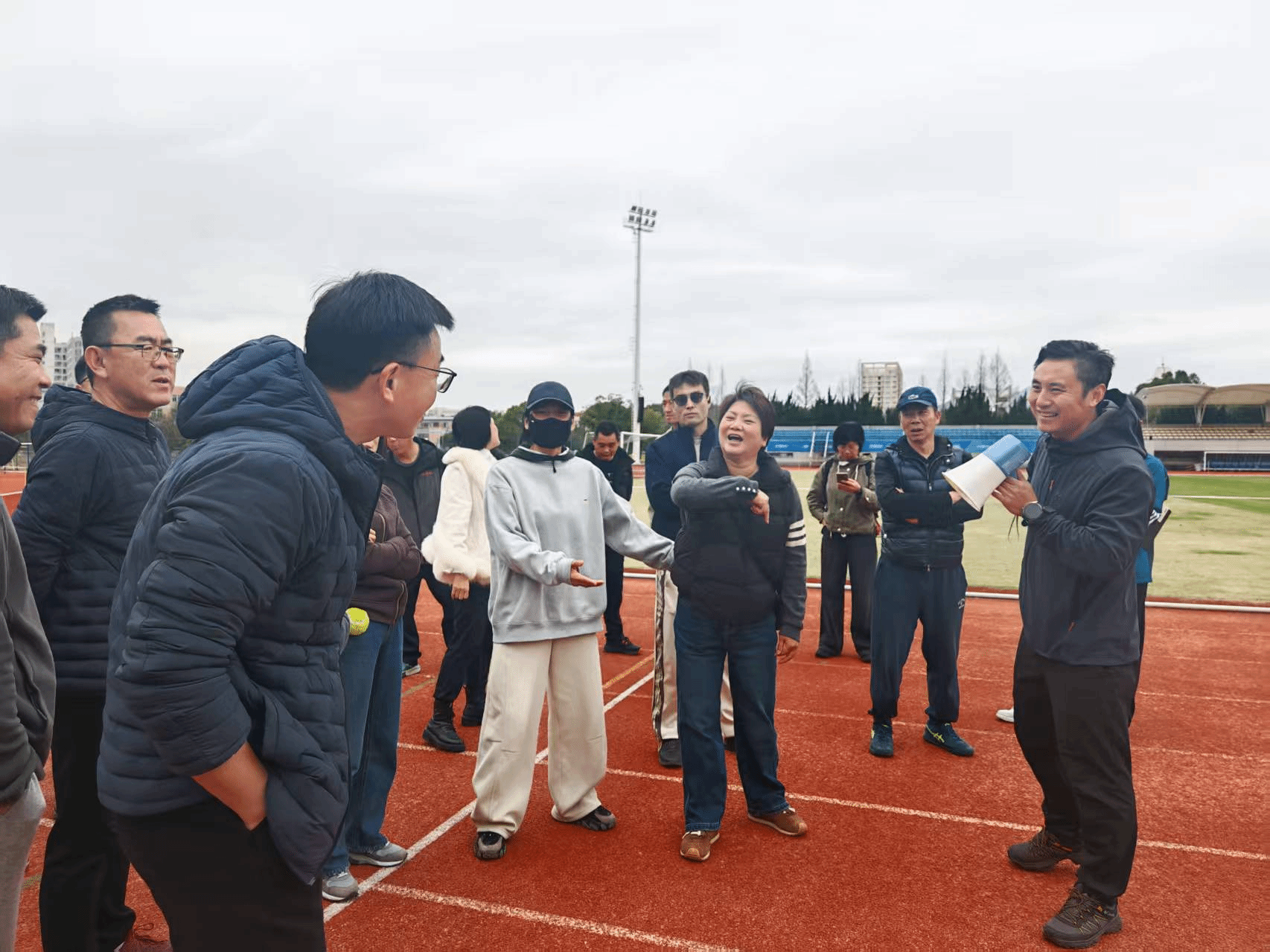 会后,全体教师前往操场开展现场实操培训。张宇对设备安装调试、测试组织、异常情况处理等内容进行了统一示范与分步讲解,参训教师在实地演练中进一步熟悉流程、巩固操作规范,确保智能设备在后续教学与体测工作中安全、稳定、高效运行。