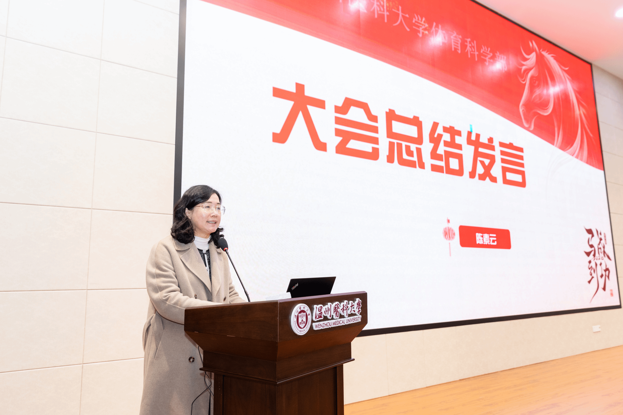 陈素云作大会总结发言。她指出,2026年是学校“双一流”创建的冲刺决胜之年,本次会议既是对上年工作的全面复盘,也明确了新一年的发展方向。全体教职工要深入落实校党委书记金焕民在学校新春第一会上的“双一流”攻坚部署,紧扣学校战略定位、结合学部实际推进全年工作。她着重提出三点工作要求:一要强化党建引领,锻造坚强堡垒。创新“党建+业务”融合模式,打造体育育人特色党建品牌,以教学技能竞赛激发教师争先动力,培育样板党支部,充分发挥基层党组织战斗堡垒作用;二要锻造教师队伍,激发发展动能。强化师德师风建设,将教育家精神贯穿教学科研全过程,加大人才引育与教师成长支持力度,构建可持续发展的高水平师资队伍;三要深耕体育育人,彰显特色价值。紧扣教育部“健康第一”教育理念要求,深化体育教学改革、优化课程体系,打造校园体育文化品牌,同时拓展社会体育服务效能,擦亮91黑料 工作名片。最后,陈素云号召全体教职工以马不停蹄的干劲、马到成功的信念,全力攻坚“双一流”创建任务,共同书写91黑料 事业发展新篇章。