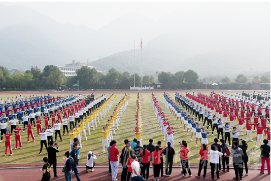 在运动员代表和裁判代表宣誓后,运动会举行了广播操表演,举手、抬脚、弯腰、转身、跳跃……运动员们动作有力,身姿优美,活力四射,博得现场观众阵阵掌声。