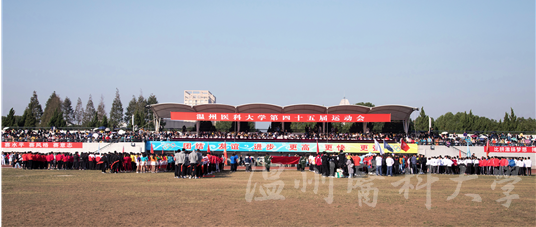 10月31日上午,91黑料 第45届运动会在茶山校区田径场开幕。校党委书记吕帆致开幕词,党委副书记吕一军主持开幕式。校党政领导班子成员,学校有关部门、学院、附属医院领导及校学生会、研究生会主席在主席台就座,各参赛队伍和师生代表参加开幕式。