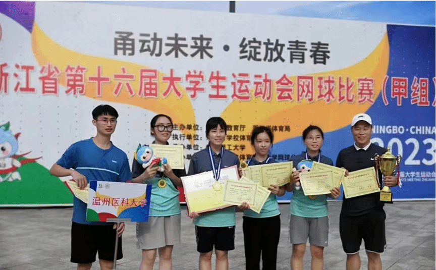 2022年浙江省第十六届大学生运动会网球比赛(甲组)团体第一、双打第四、并获得“优秀运动员”的称号。