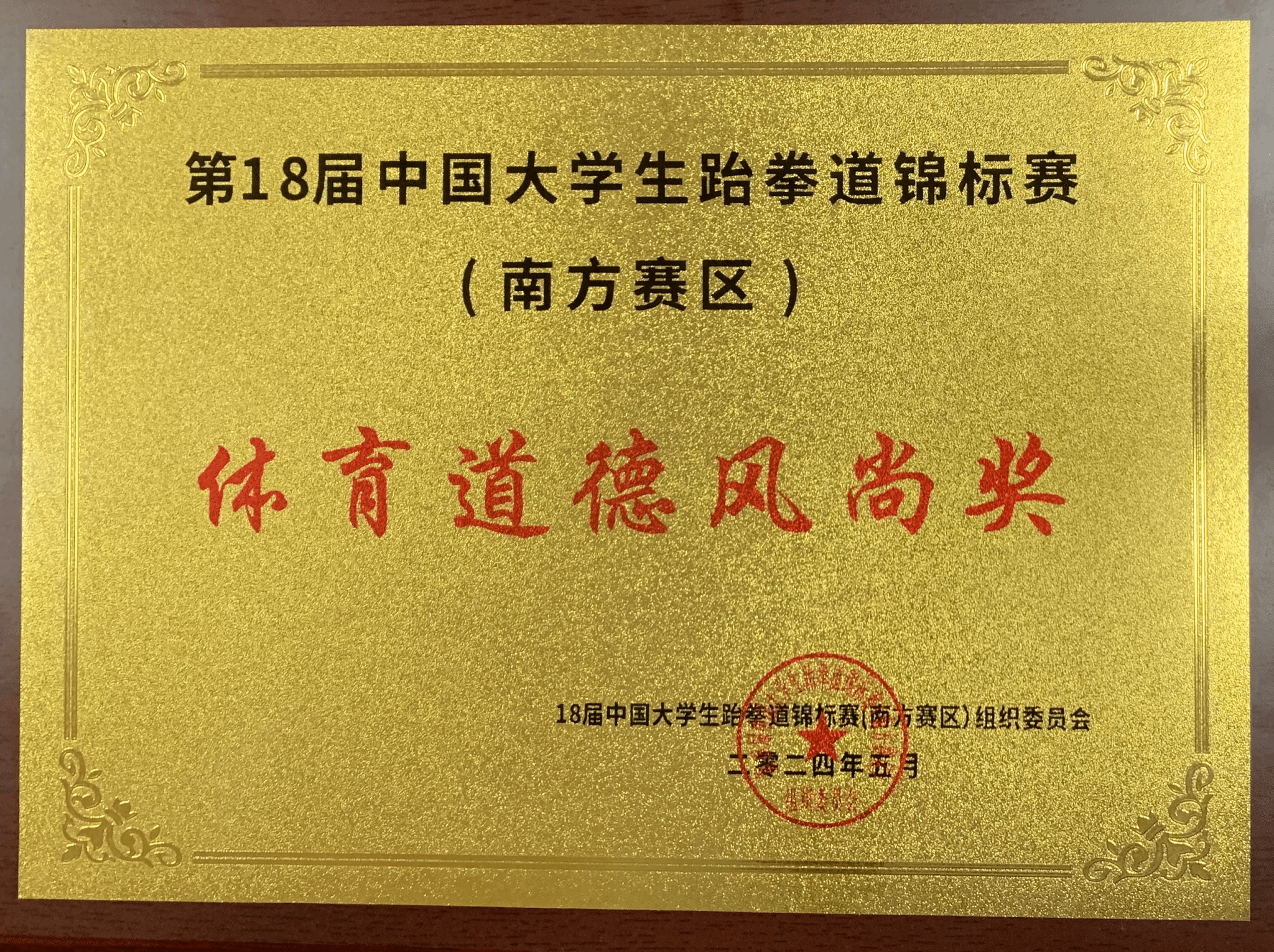 • 2024年5月19日至25日,第18届中国大学生跆拳道锦标赛(南方赛区)在湖南长沙隆重举行。本次比赛由中国学生体育联合会主办,中国学生体育联合会大学跆拳道分会执行,共有242所高校、2251名运动员参赛。此次比赛,我校派出了由董凤鸣老师任教练、多名优秀运动员组成的代表队,在比赛中取得令人瞩目的成绩,荣获多项殊荣。我校王守都老师应邀担任本次比赛副裁判长。