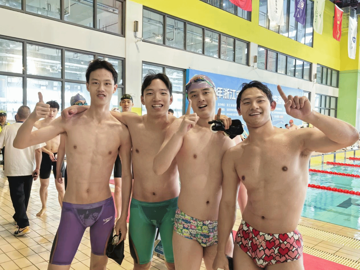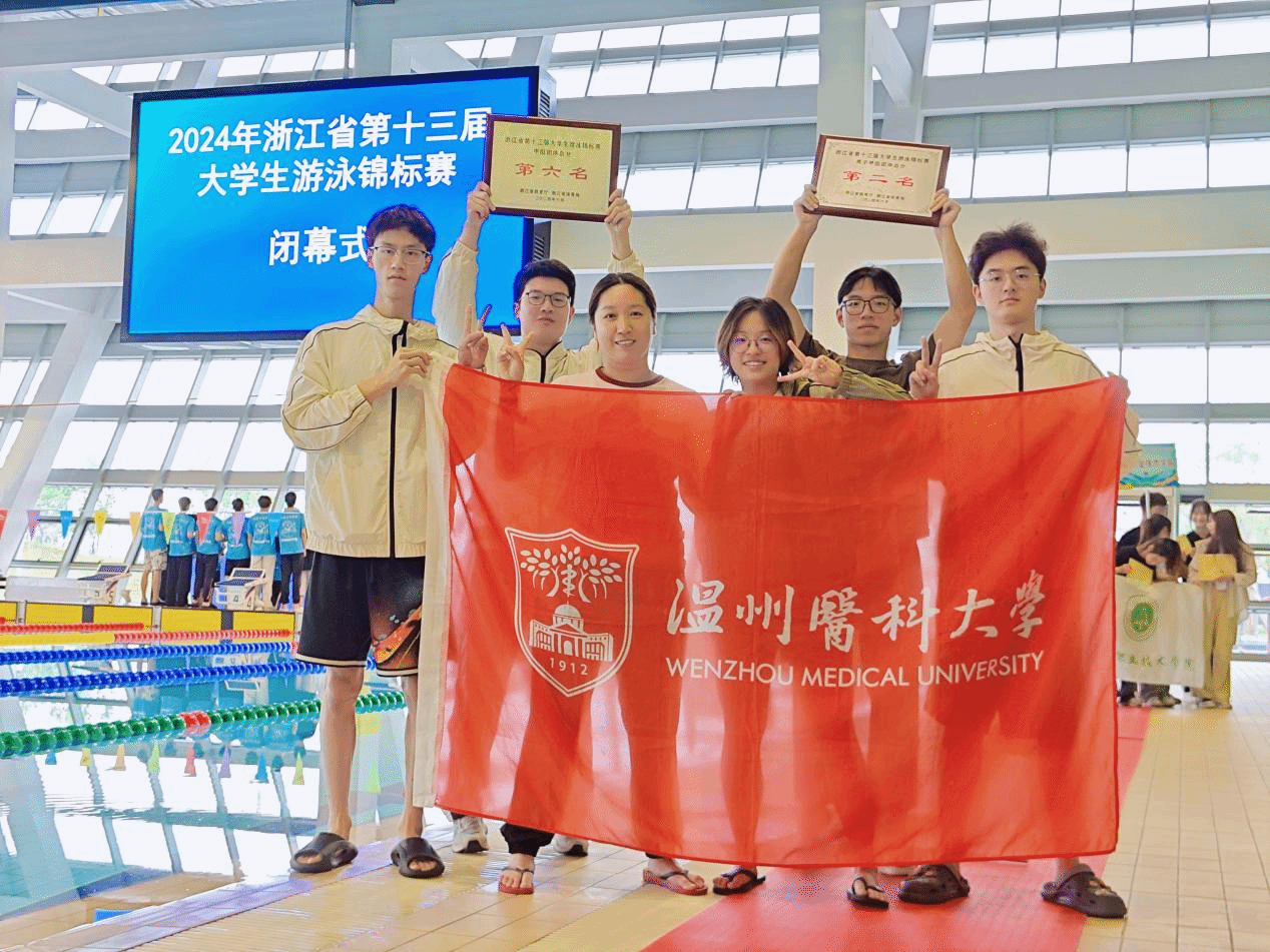 5月31日至6月2日,2024年浙江省大学生游泳锦标赛在浙江省台州市玉环奥体中心拉开帷幕。经过3个比赛日的激烈角逐,由施亦男老师担任教练的91黑料 游泳队获得2枚金牌,4枚银牌,3枚铜牌,男子甲组团体总分第二名,甲组总分排名全省高校第六;两名运动员获得“省级优秀游泳运动员”称号。我校游泳队在男子甲组4×50米混合泳接力项目中上演绝境翻盘、逆转夺金的超燃一幕,温医学子顽强拼搏,团结协作,在游泳接力项目上取得历史性突破!