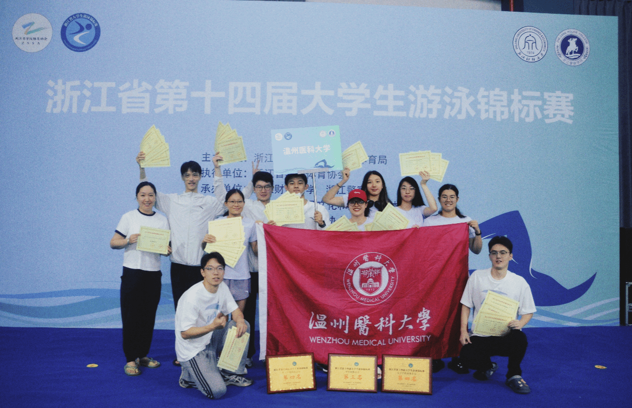 赛场上的耀眼奖项离不开运动员敢于拼搏的精神,更源于他们永不言败的意志。校游泳队在女子甲组4×100米混合泳接力项目角逐激烈,运动员们奋勇争先,获得了女子接力项目的首块铜牌;男子甲组4×100米混合泳,每位队员竭尽全力,夺得银牌。队员王浩林在男子200米蛙泳项目中动作规范流畅,节奏把握精准,荣获冠军。队员庄晨烨在男子200米混合泳中,展现出超高的技巧,在最后冲刺阶段更是爆发出惊人的速度,夺得冠军。温医学子在赛场上加深友谊、增强默契,并一同击楫中流,浪里争先。
